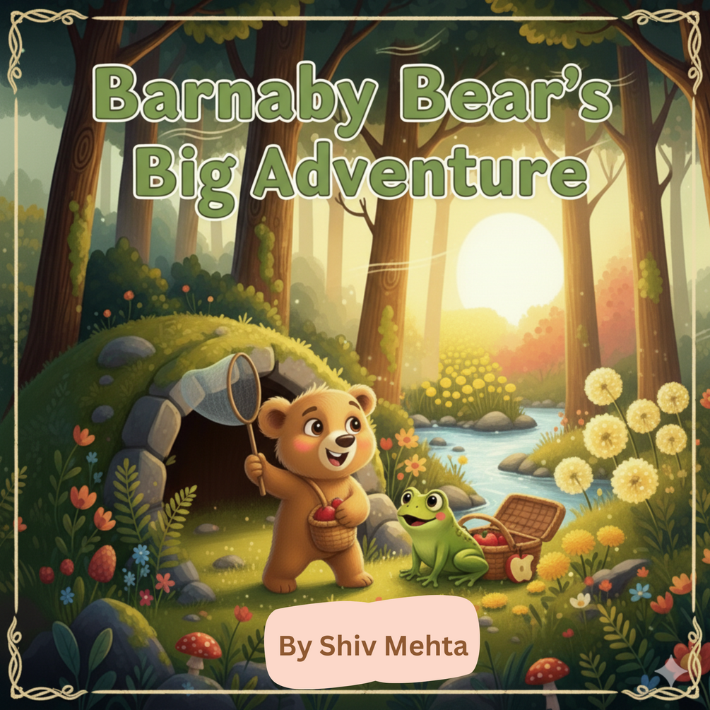 Barnaby Bear’s Big Adventure is a delightful children’s story that follows Barnaby, a curious little bear, as he ventures beyond his cozy cave for the very first time. Along the way, he meets a clever frog named Ferdinand and discovers the joy of courage, kindness, and friendship.